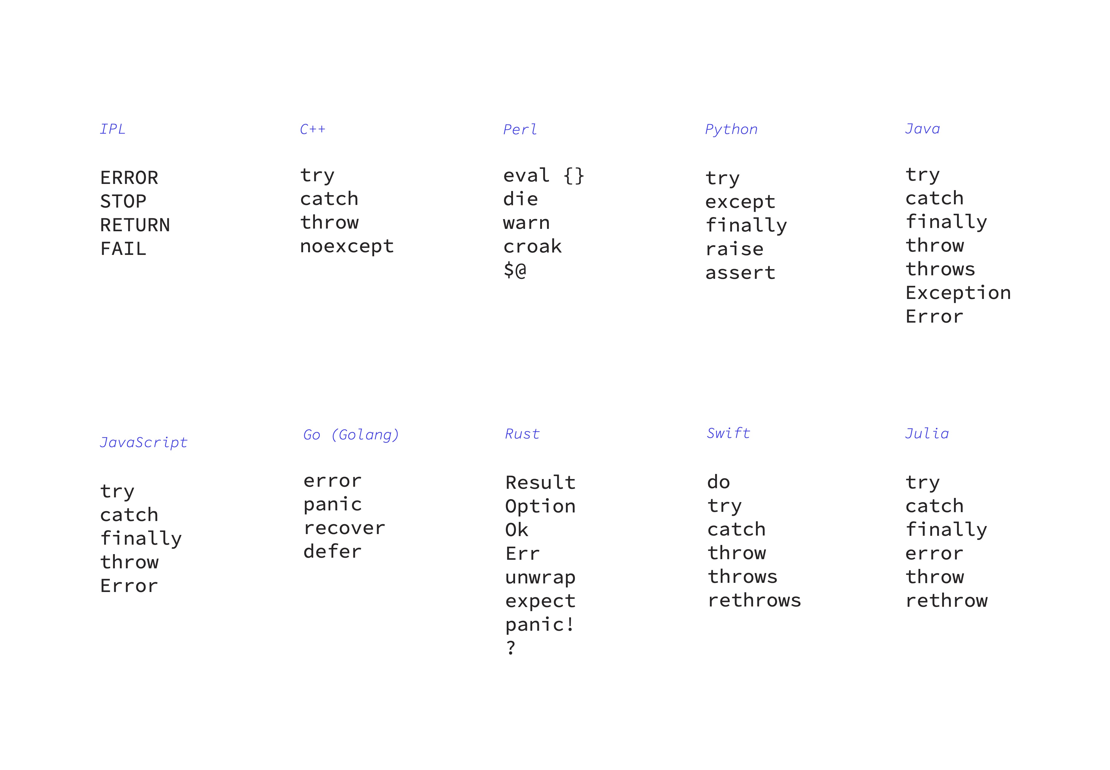 handling errors uses error-handling vocabulary from several programming languages, translated into spoken dialogue. the work consists of audio recordings in which two people attempt to communicate using only these words – terms designed to anticipate, detect, and resolve mistakes in code.