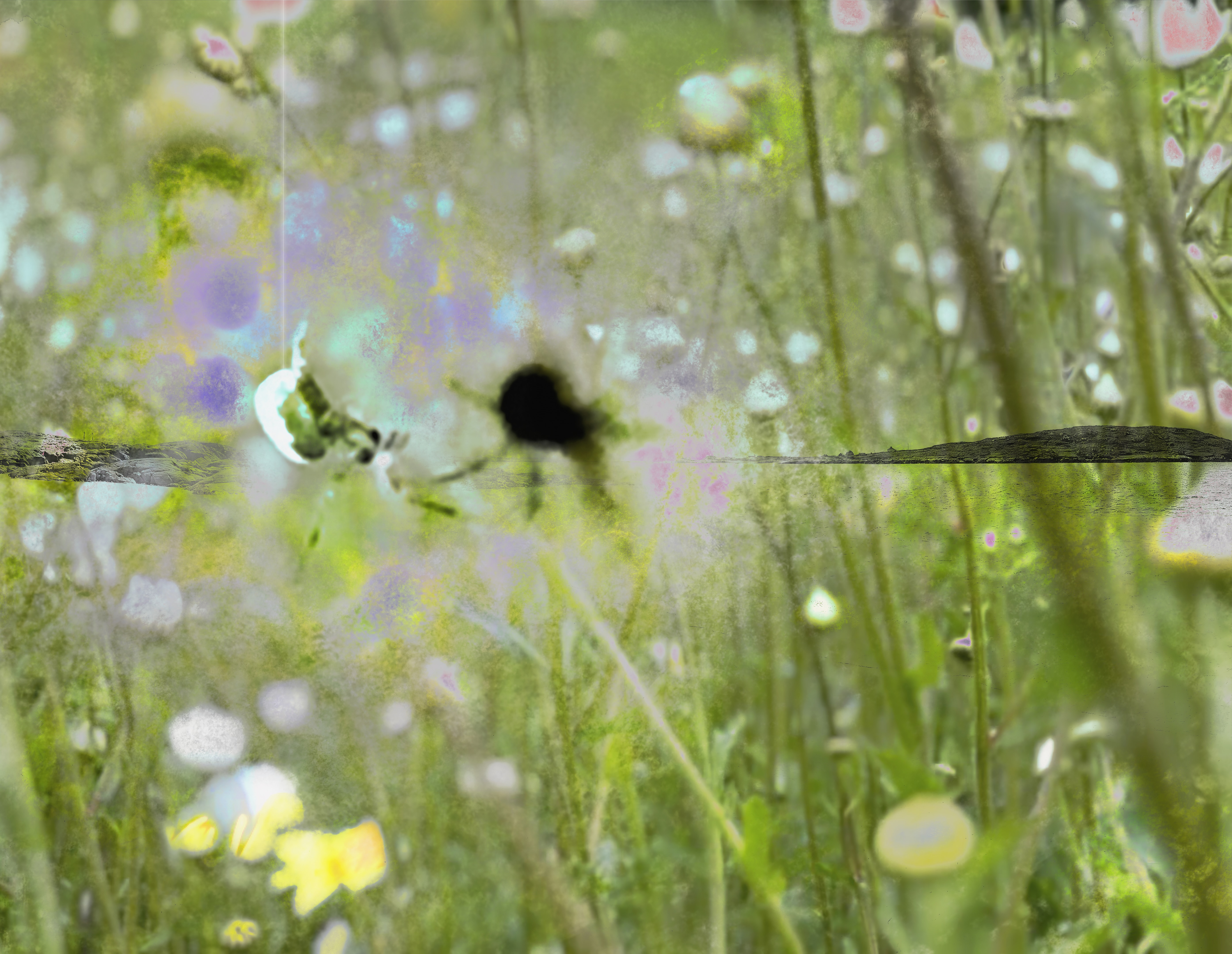 this visual and sonic space features lo-fi gastropods and glitched birdsong, juxtaposed and attenuated along a semitransparent, algorithmically blended, looping timeline. alongside the video installation, a diptych print titled by a thread extend this inquiry into the material image.